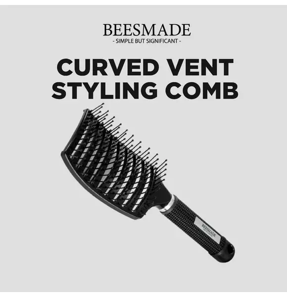A BEESMADE comb, specifically the Professional Curved Vent Detangling Styling Hair Brush, is designed for all hair types, wet or dry, and is suitable for detangling, styling, and volumizing. It features a curved design to promote blood circulation, rounded comb teeth to minimize damage, and a comfortable, non-slip handle.