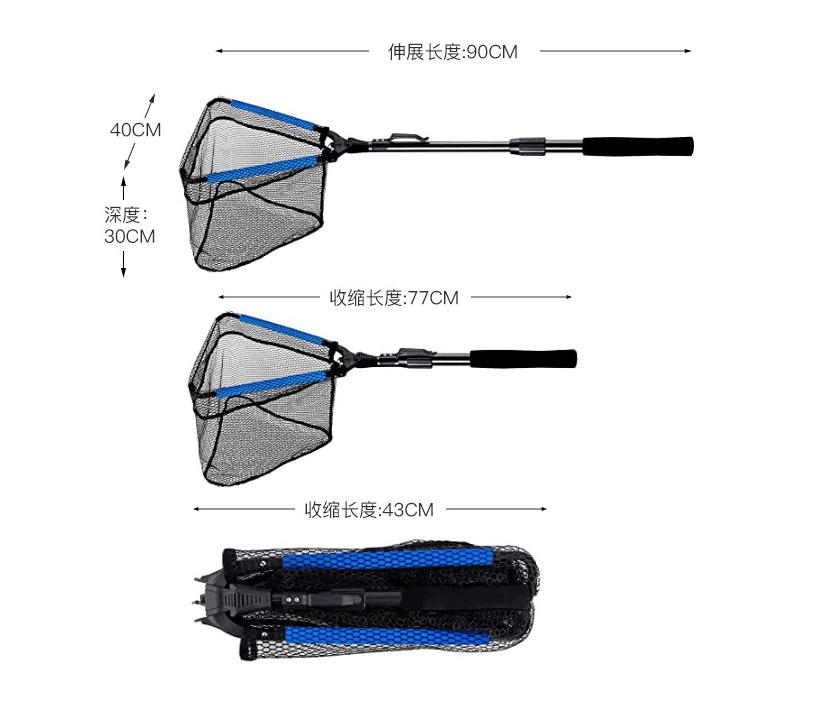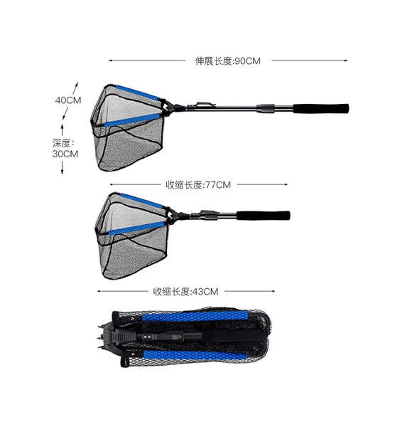 Blue Foldable Eva Floating Rubber Mesh Telescopic Landing Net 0.9M HY-0505