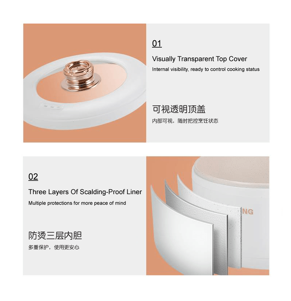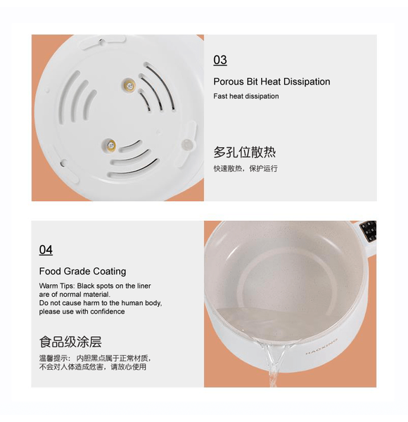 – Material: PP Pot Body, PP Steamer, Ceramic Oil Liner