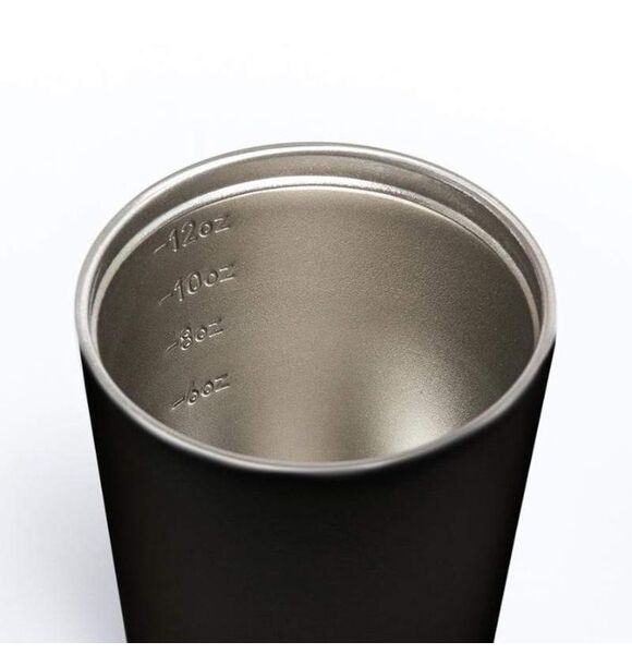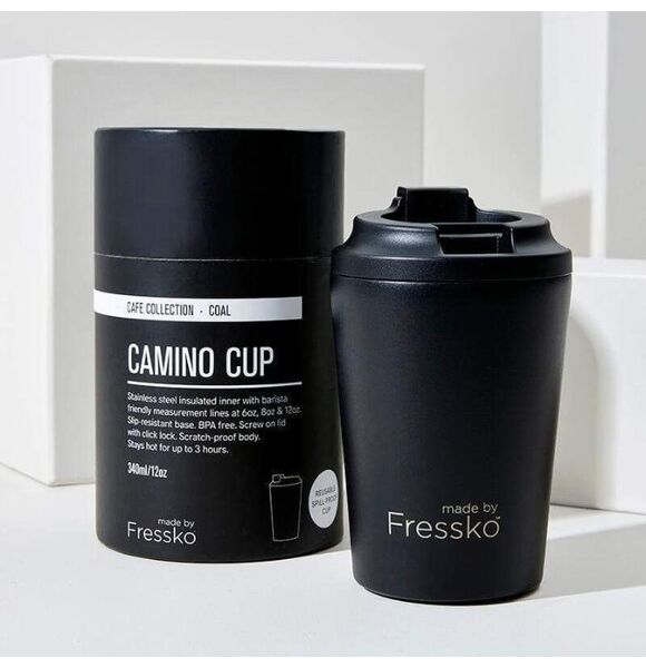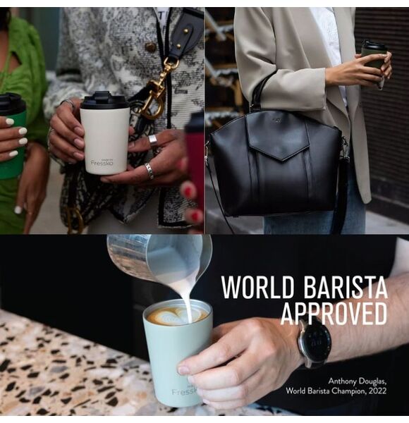 REUSABLE COFFEE CUPS The stylish, chemical-free, lightweight, insulated stainless steel reusable coffee cup is the new and improved version of the classic takeaway cafe cup. Keeping style and our coffees, simple. - Available in 8oz, 12oz +16oz - Stays hot for up to 3 hours, depending on use - Insulated for cold drinks, too - Easy clean, no fuss, click back lid - Internal Barista lines - Fits under standard coffee machines - Fits in a standard car cup holder - Ideal for travel - Sip hot beverages safely around young children - Outer stays cool to the touch