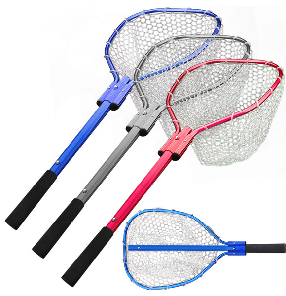 Grey Frame Fixed Length Rubber Mesh landing Net 1.03M WH-003