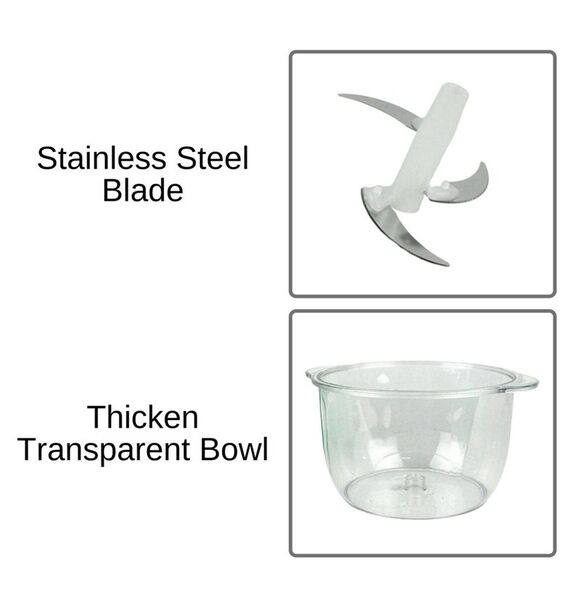 - Food chopper features cutting rotator with 3 ultra-sharp stainless iron blades for fast and even chopping/mincing.