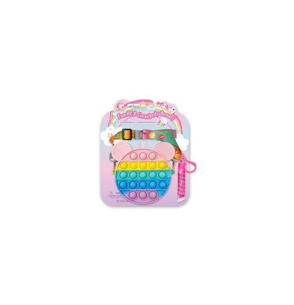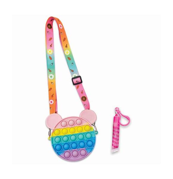 Fun with the push pop while wearing the latest fashion crossbody. Plus a bonus of beauty Contain: 1 Crossbody 1 Lip Gloss with Keychain