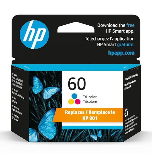 HP 60 Tri-colour Original Ink Cartridge Cartridge Colors: Tri-color Print Technology: Ink Page yield colour: ~165 pages Product type: Standard...