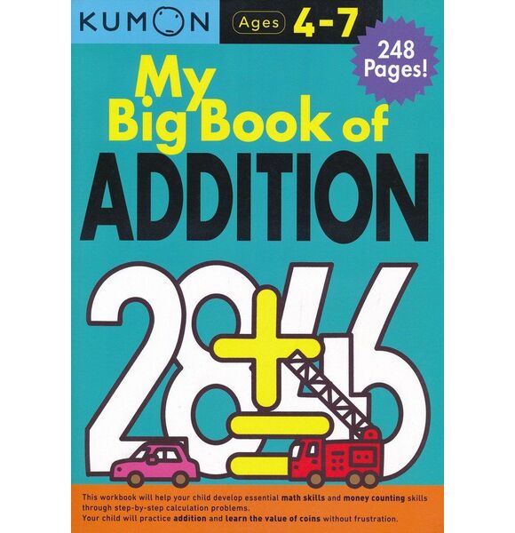 This big Kumon workbook is meant to strengthen your child's addition skills and money counting skills through step-by-step calculation problems.