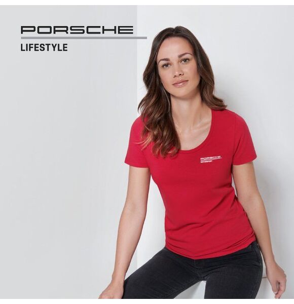 Short-sleeved t-shirt in jersey with three buttons and 'Porsche Motorsport' signet. Tonal, vertical 'Porsche' logo on the back. 95% cotton, 5% elastane.