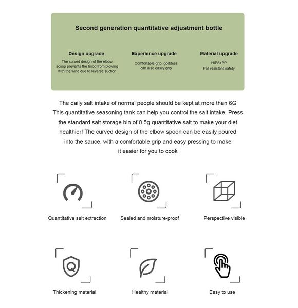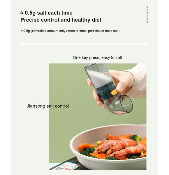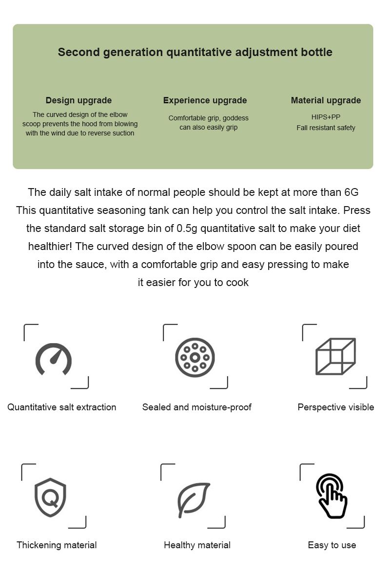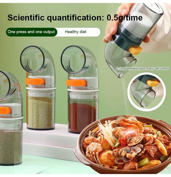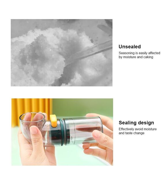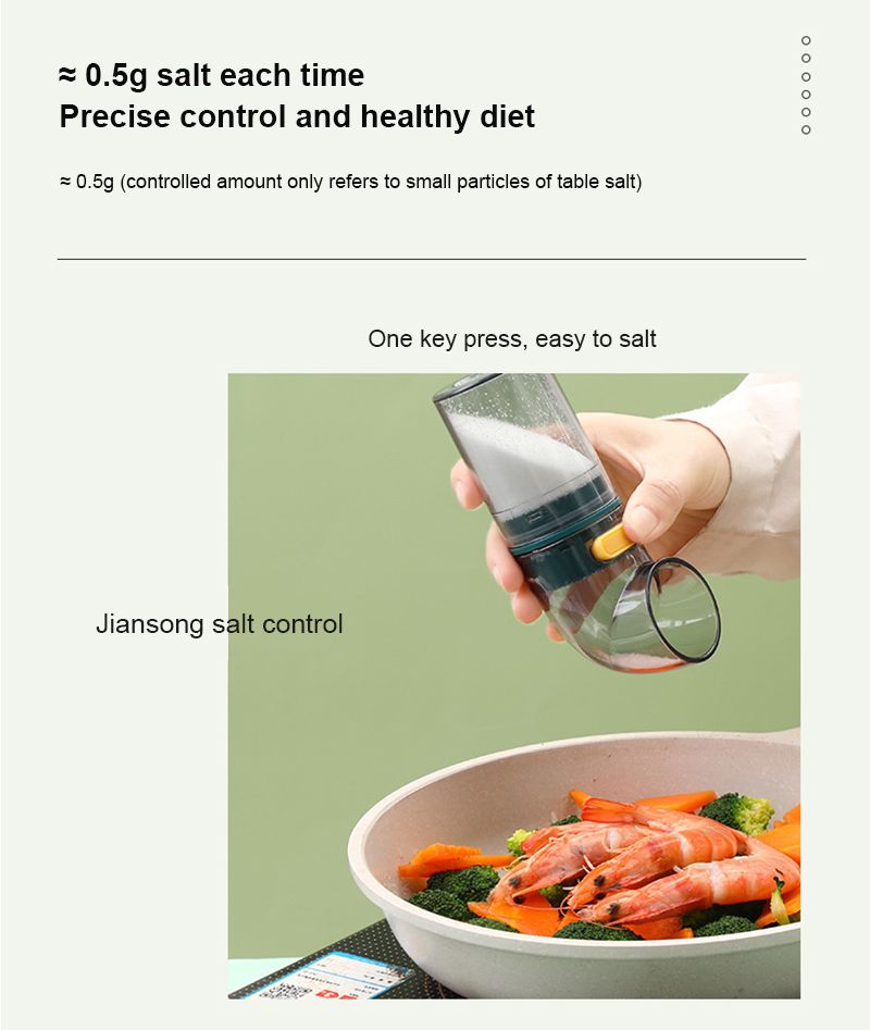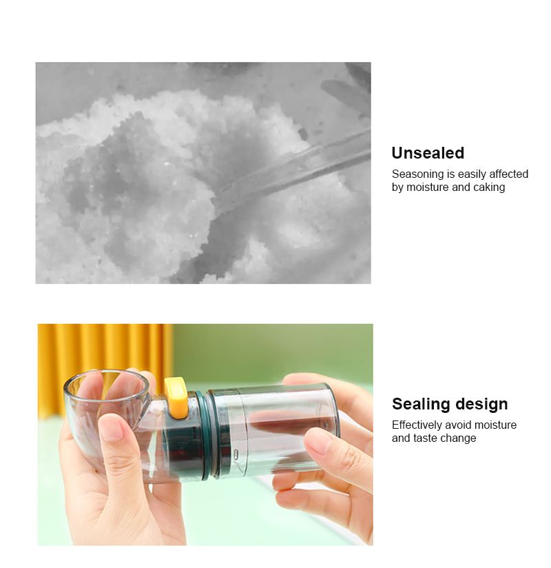 *1. The salt bottle adopts the press type design to add salt quantitatively. The anti-skid thread design on the surface ensures easy and comfortable holding and convenient use.