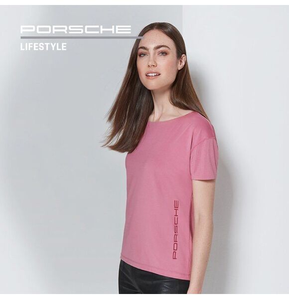 T-shirt made of functional jersey that is breathable and loose-fitting, with a large, transparent gloss print of the "PORSCHE" logo.