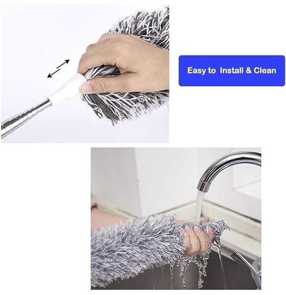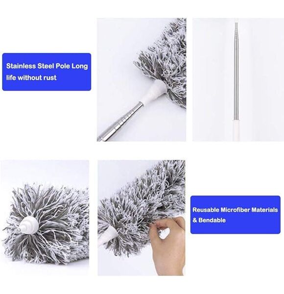 - BENDABLE & FLEXIABLE HEAD: The microfiber head is flexible and bendable. You can bend it to any angles as you need. And adjusting the pole to clean the low place like keyboard, kitchen, window blinds, picture frames, television screens, and the inside of your car.