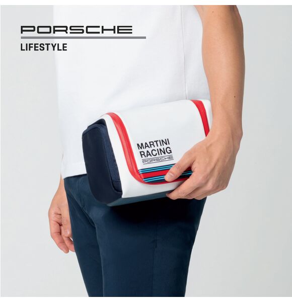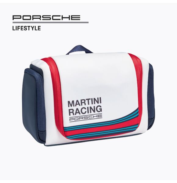 Compact wash bag in the legendary Martini Racing Safari design. With practical hanging hook.
