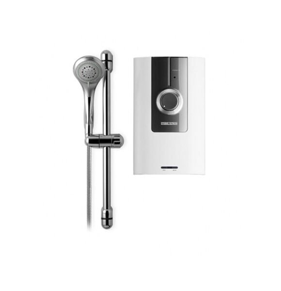 3500 Watt electric capacity 5-level shower head Soap tray Slide bar Shower tube Luxury design Exactly temperature adjustment with single stepless knob control Quick and simple to install Easy and safe to operate Anti-scalding prevention with a hi-tech double auto thermostat safety cut-off ELSD (Electric Leakage Safety Device) protection against electricity leakage Water/splash-proof to IP 25 electrical safety standard Maintenance-free copper tank 5-in-1 shower setting Works even with low water pressure Warranty 5year on Heating Element