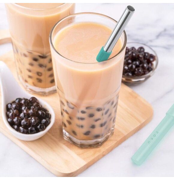 - Telescope Design - Collapsible straws are stored in a pocket sized container but fit any drink (pearl milk, milk tea, pearl tea, tapiocatea, shake, milkshake, smoothie, slash)