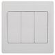 Electric current Switching current 16 A Rated current 16 A Installation, mounting Mounting on Flush mounting Voltage Rated voltage 250 V Materials Colour White Surface finish Glossy Material Polycarbonate (PC) Treatment Untreated Connectivity Mounting type Screw mounting Controls and indicators Number of buttons 3 Dimensions Built-in depth flush-mounted boxes 35 mm Safety Ingress Protection (IP) class IP20 Architecture Control/operation element Triple rocker Texts Lighting Without lighting (cannot be illuminated) Switch mode 2-way See less