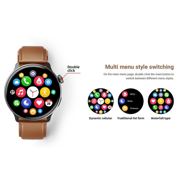 - Dual-core main chip - HD bluetooth calling - AMOLED HD color screen - intelligent heart monitoring - Support 60 workout modes -Metal body - 12...
