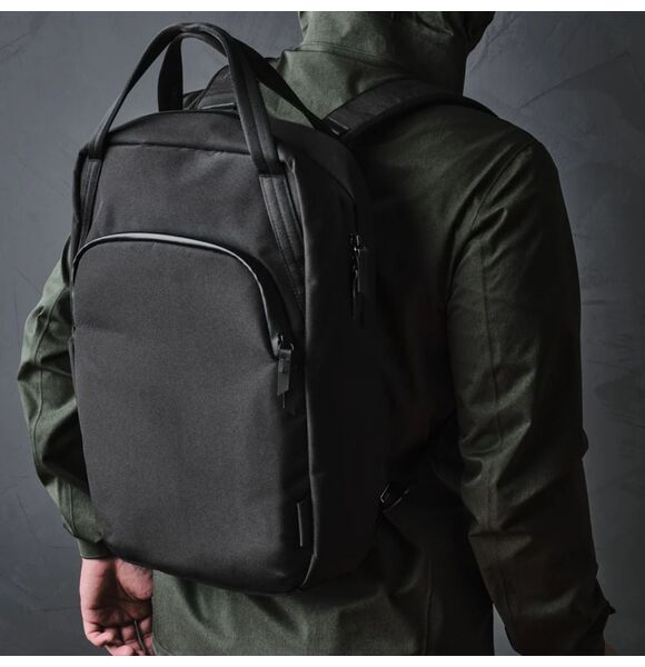 Become the embodiment of style as you navigate the urbanscapes with this convertible totepack (tote + backpack). Effortlessly carry it by hand or transform it into a backpack by attaching the concealed backpack straps. The totepack is meticulously crafted using our Axoflux recycled fabric, ensuring optimal protection for your essentials while remaining eco-friendly.