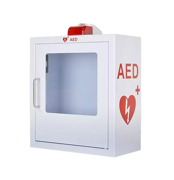 AED first aid wall mount cabinets with alarm that are designed with rounded corners to make them safer for people to use. With this AED cabinet, you can have the peace of mind in knowing that it is protected from dirt, dust, and possibly theft. Designed to work with all major AED models.
