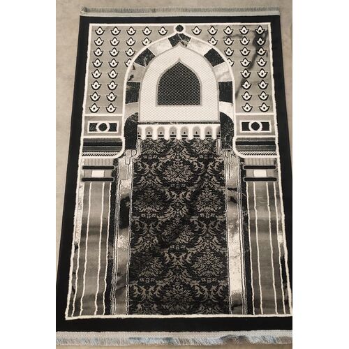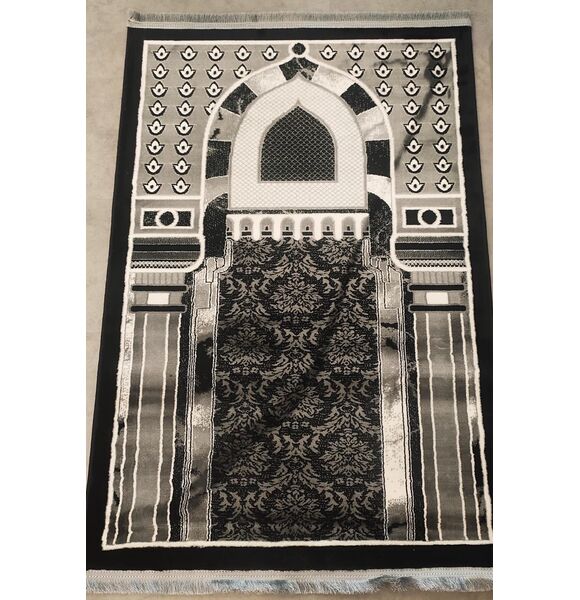 Prayer mat Collection : Silk Vera 100% polysilk Design : SC078 Color : Black Size : 80cm X 120cm Made In Turkey