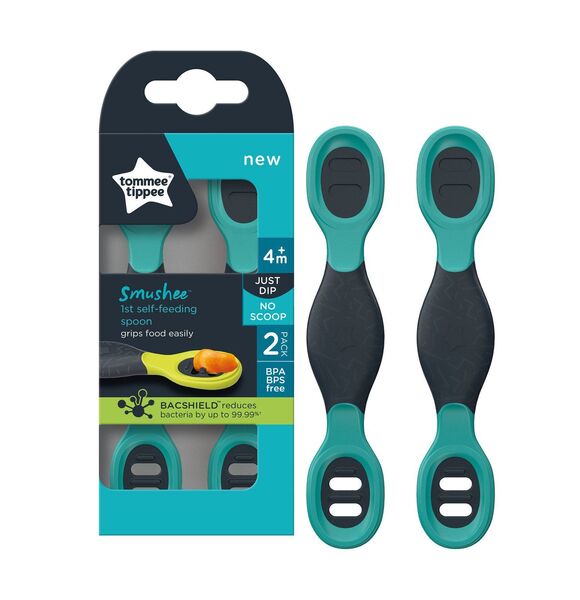 - This cleverly designed self-feeding spoon allows your baby to easily start to learn how to self-feed. The reversible ‘anyway-up’ design features chunky handles making it easy to hold and control. The special slotted design allows baby to simply dip the spoon into the bowl to and it will grip food making learning fun for baby and you as more food on the spoon means more food in the mouth. Full baby, happy baby, happy mum.