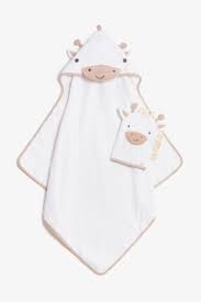 A super-soft, fluffy towel with a cosy hood and a coordinating towelling mitt. Both the towel and wash mitt feature the cutest little giraffe character with embroidered detailing.Perfect to use at bath times, at the pool or on holiday, our cuddle 'n' dry towels are made with 100% soft and absorbent cotton which is gentle on delicate skin and ensures your baby dries thoroughly and quickly. The double-layer corner is designed to slip over your baby's head allowing you to easily wrap them in the full-length towel for cosy, cuddles. This sweet set includes a coordinating towelling wash mitt to gently wash your baby.