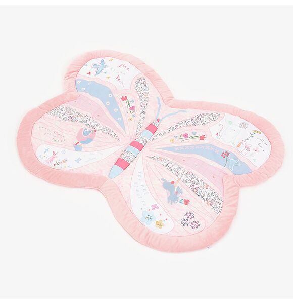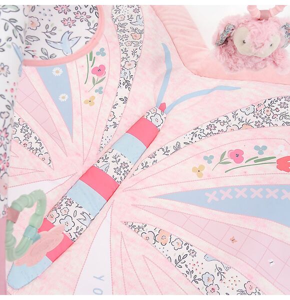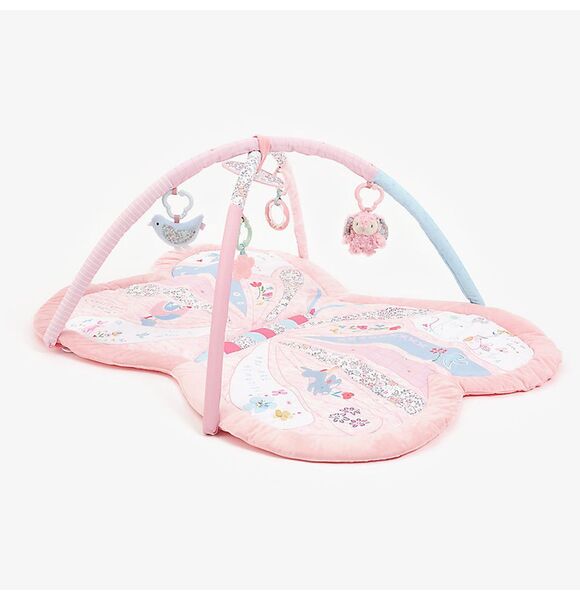 Suitable from birth, with a soft padded base for optimum comfort, the butterfly play mat is the perfect for your baby to play, explore and learn.Your baby can lie down for tummy-time play on the luxury mat and explore the prints and sweet flutterby characters. The play arches with four hanging toys and a baby-safe mirror attach easily to the playmat for added fun. Our luxury play, activity gym encourages babies to interact with their surroundings, developing their all-important hand-eye coordination while they have fun!