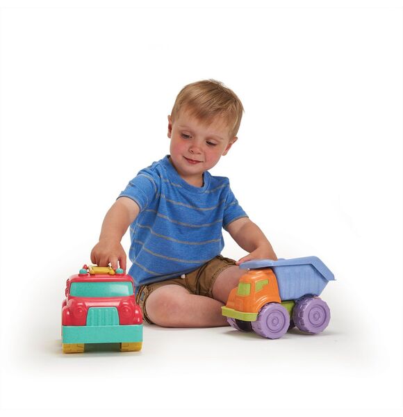 Made with recycled plastic and plant fibre composite, this toy is a more sustainable option for your little ones. Playing with the My Chunky Fire Engine encourages imaginative play while helping develop hand to eye coordination and getting little ones moving.